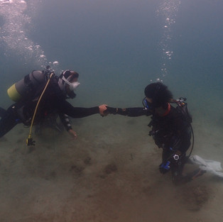 スキルトレチームは、中性浮力で器材脱着