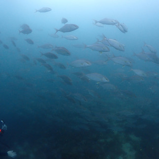 我々サンクチュアリダイバー、カンパチ軍団に囲まれる